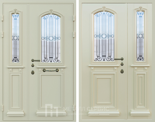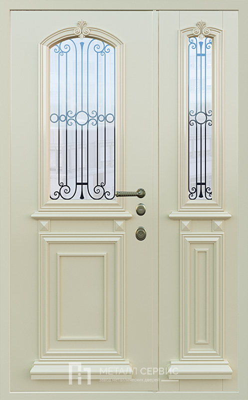 Двухстворчатая дверь с МДФ RAL Стекло+Ковка №4